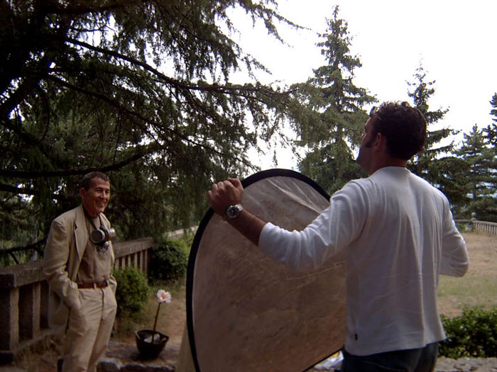 El director del documental dando las últimas instrucciones a Fernando Sánchez Dragó |