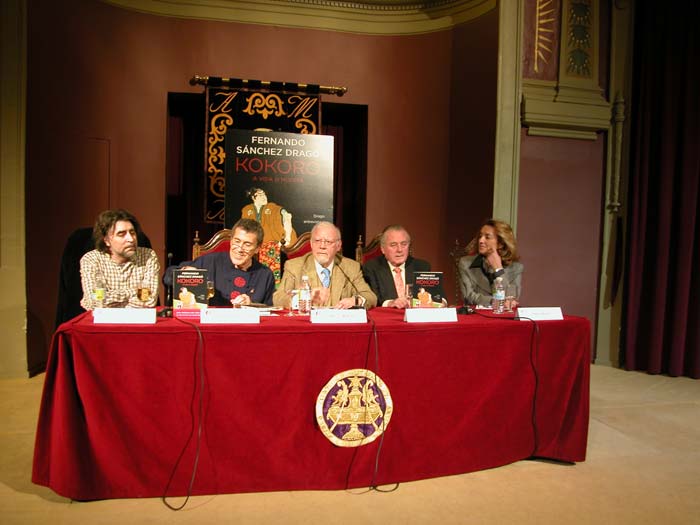 Joaquín Sabina fue el siguiente en intervenir, reapareciendo después de su “gatillazo” en Gijón -donde había suspendido varios conciertos-, cuando debería estar guardando reposo por prescripción médica. “Eso es un amigo”, comentaría Dragó minutos más tarde. Sabina definió así su amistad con Fernando Sánchez Dragó, alegando “que ambos nos queremos mucho y que siempre estamos de acuerdo en casi nada”. Agregó que “KOKORO es un libro singularísimo” y que uno de los aspectos que más le habían gustado era el hecho de que después de un accidente uno no debe sentar la cabeza, sino sentirla. Evocó, asimismo, “aquellos años de las primeras giras con Javier Krahe, que teníamos que parar al borde de la carretera para discutir Gárgoris y Habidis, porque yo era marxista, Krahe era anarquista y Fernando no se sabía ya lo que era. Bueno, él había sido ya ex todo. Quería decir que la cofradía de amigos de Fernando no tiene que estar de acuerdo con él al cien por cien, ni él lo quisiera, sólo tienen que sentir la cabeza, en lugar de sentarla, en un país en el que todos tienen la cabeza mal asentada. Creo que su voz es muy singular, creo que su voz es muy necesaria, creo que todos sus libros son iniciáticos, y éste también”. Además, Sabina dedicó unos versos a Fernando Sánchez Dragó que emocionaron a éste visiblemente.