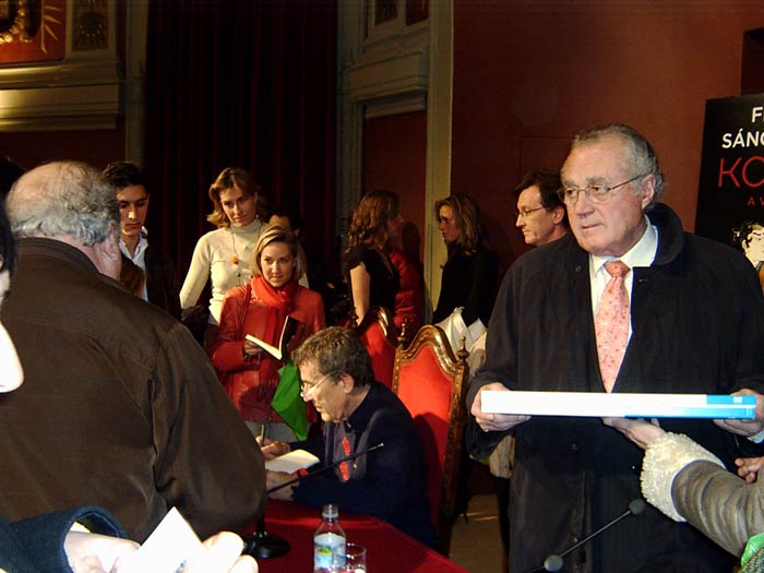 Después del acto Fernando Sánchez Dragó charló y atendió a sus seguidores. A la derecha, Félix Arellano |