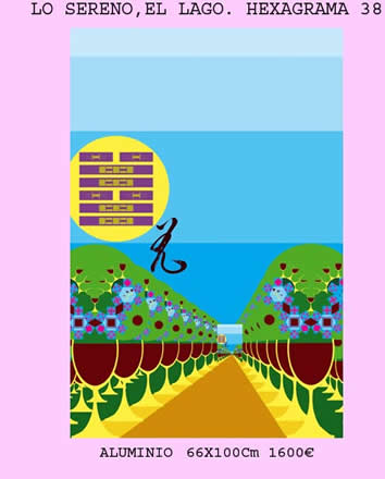 Grande, empero, es mi asombro en esta circunstancia al reparar en la evidencia de que Félix y yo, cada uno por su vereda, hemos dado en ramonear los mismos pastos... A saber: los de Oriente, verbigracia, tal como en esta exposición despuntan. Hay en ella yantras, thankas, mandalas, crismones, espirales de energía, sexo sagrado, kundalinis, cristales de calidoscopio, chiribitas del samsara, trampantojos, geometría que se transforma en poesía, pulsar de chakras, fluir de prana, posos de horno de crisopeya de alquimista y, últimamente, para mayor coincidencia entre nuestros respectivos mundos, el de Félix y el mío, hexagramas del I Ching, que convierten la pintura de Arellano en propuesta oracular y sapiencial.