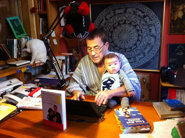 Dragó: La paternidad es una asignatura extremadamente difícil, y para mi más porque no tuve padre. La maternidad es mucho más fácil por una cuestión de biología. El milagro de mi vida es haber creado una familia perfecta en la que hay siete vidas conyugales y cuatro hijos de cuatro mujeres de distinta nacionalidad. Todos, incluidas las que ya no son mis mujeres, nos llevamos bien. ¿Bien? No,de puta madre.