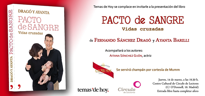 El 12 de marzo se publica Pacto de sangre. Vidas cruzadas, de Fernando Sánchez Dragó y Ayanta Barilli, editado por Temas de Hoy. La fecha para su presentación oficial en Madrid es el 14 de marzo. Acompañará a los autores Aitana Sánchez-Gijón.